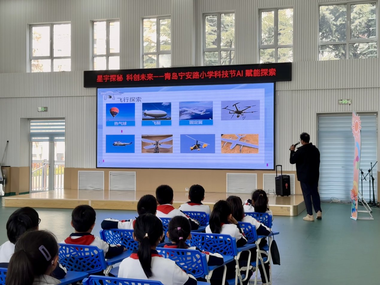 为普及航空航天无人机知识,激发青少年对科技创新的兴趣与热情,培养学生的科学素养与实践能力,4月10日,天和翔通受邀走进青岛宁安路小学,开展“星宇探秘 科创未来——AI赋能探索”主题无人机科普课堂活动,为同学们带来一场别开生面的科技体验盛宴。